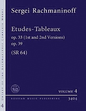 A must for the meticulous study of Rachmaninoff's preludes! Volume 4 of the practical urtext editions of the complete works for piano by Sergei Rachmaninoff contains Etudes-Tableaux on the basis of the unreduced musical text from the Rachmaninoff Critical Edition with detailed preface and colour facsimile reproductions of autograph manuscripts. - First publication of versions 1 and 2 of 9 Etudes-Tableaux Op. 33 with special appendix devoted to the reconstruction of the cycle - Appendix with first publication of version 1 of Etude-Tableau Op. 39, No. 1 in C minor and early variants of individual text fragments of Etude-Tableau Op. 39, No. 3 in F sharp minor.