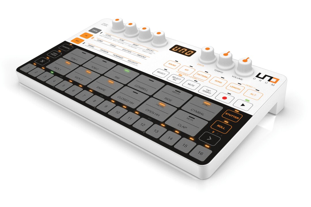 UNO Drum is the ultimate beat creation station for anyone and everyone to create warm, punchy, high-quality, and inspiring grooves. Made in collaboration with Italian analog specialist Soundmachines, UNO Drum offers 6 analog voices, 54 PCM samples and up to 11 voice polyphony. Save up to 100 kit presets, 100 pattern presets, and take advantage of an intuitive 64-step sequencer to add professional drum grooves to your music. UNO Drum offers 3 master effects – compression, drive and stutter, and 5 performance effects, alongside 12 drum elements to create your own unique sound. Plus, UNO Drum easily integrates with your existing gear, with USB and 2.5mm MIDI, audio input for daisy-chaining, and an intuitive software editor you can use as a plug-in in your sessions, or on your iOS device. Portable and powered by either USB or 4xAA batteries, UNO Drum lets you make music anywhere, without sacrificing features and functionality.